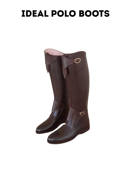 Made from premium full-grain leather, the boots feature a clean, sleek silhouette with traditional flap straps and brass buckle detailing that ensures a secure fit during intense play. The soft leather lining provides all-day comfort, while the sturdy sole offers excellent grip and stability in the stirrup.